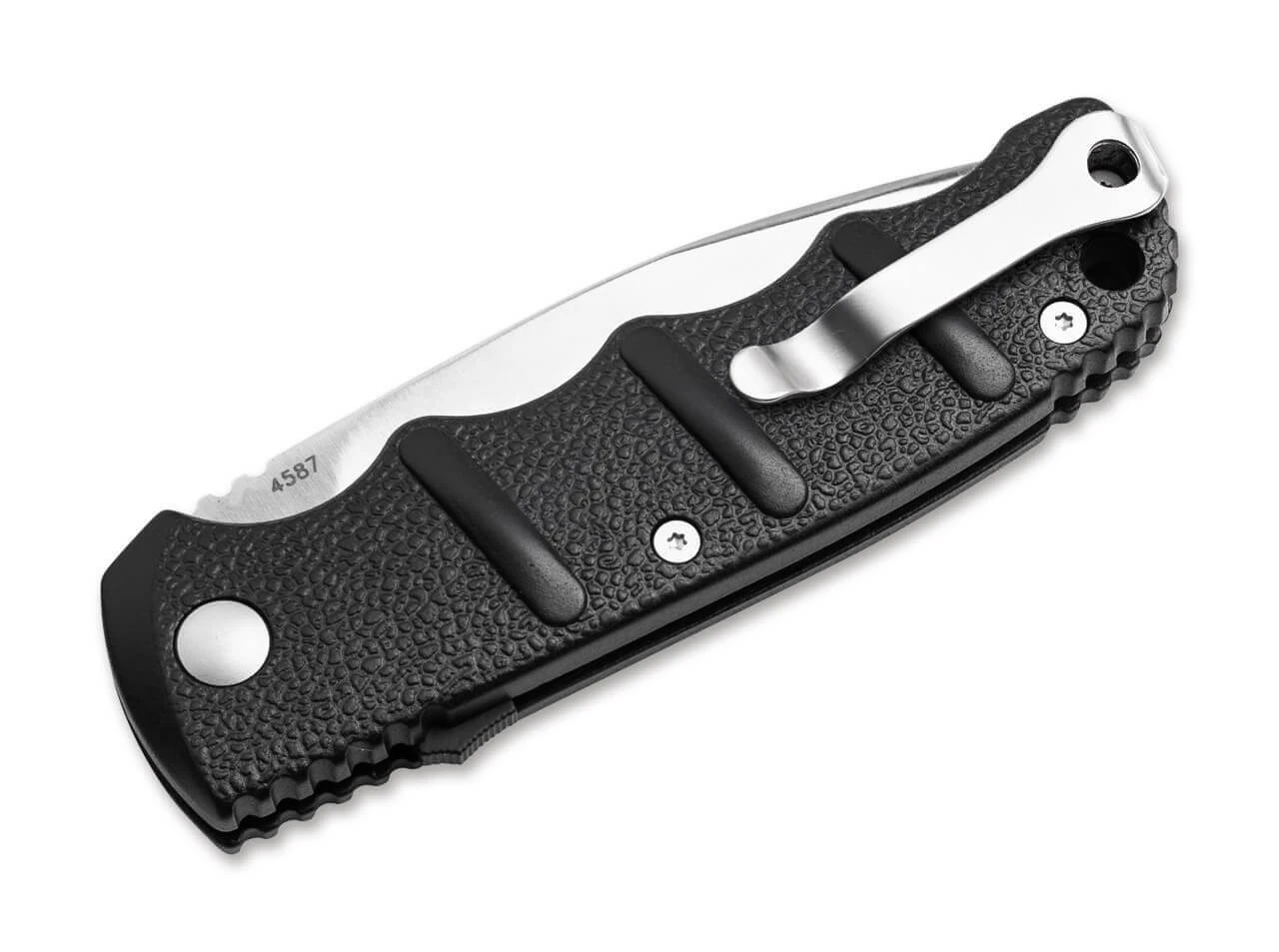 Das Böker Plus AKS-74 aus der Kalashnikov-Serie gehört mit Sicherheit zu den beliebtesten Modellen unseres Sortiments und wurde in den vergangenen Jahren in zahlreichen verschiedenen Varianten produziert. Mit dieser High-End-Version des Automatikmessers verneigen wir uns vor unseren Fans und deren Treue zu uns und bieten mit dem pulvermetallurgischen Hochleistungsstahl CPM-S-30V in der Kalashnikov-Serie ein ganz besonderes Highlight an. Der amerikanische Hochleistungsstahl ist seit vielen Jahren einer der Top-Klingenstähle weltweit und durch den hohen Materialpreis eigentlich ausschließlich im Hochpreissegment vertreten. Das Satin-Finish der Klingen hebt die Sonderversion auch optisch noch einmal deutlich ab. Der schwarze Griff aus Aluminium erinnert stark an das Bajonett des berühmten Sturmgewehrs und die erhabenen Strukturbahnen bieten in jeder Situation sicheren Halt. Mit Clip (Tip-Up).