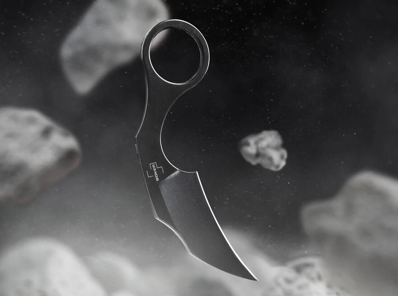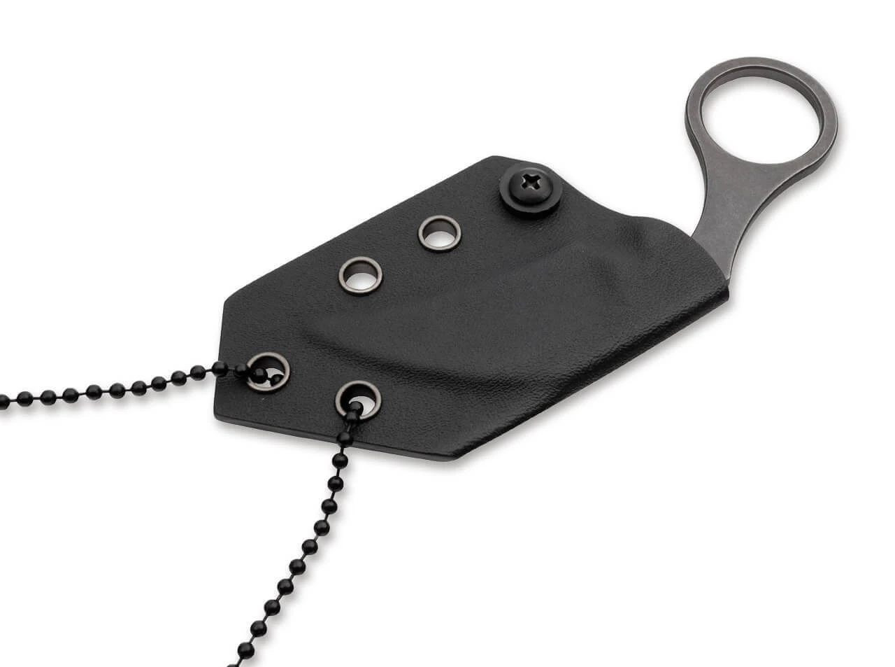 Der aufstrebende deutsche Messerdesigner Simon Frömel ist bei Böker kein Unbekannter. Bereits mit dem Böker Plus Rescue Kiridashi konnte er in der Vergangenheit für Furore sorgen. Sein nächster Coup ist gewiss: das Böker Plus Bad Moon ist ein feststehendes Karambit-Messer mit minimalistischer Anmutung und maximaler Funktionalität. Die Ganzstahlkonstruktion ist mit einer Hawkbill-Klinge aus äußerst schnitthaltigem D2 ausgestattet, deren Linien sich im geschwungenen Griff fortsetzen und dadurch eine sehr effiziente Nutzung garantieren. Garniert ist das gesamte Messer mit einem Dark-Stonewash-Finish. Typisch für diese Messerart ist der große Ring am Griffende, der eine sichere Handlage garantiert und auch als Fangriemenöse verwendet werden kann. Lieferung mit maßgeschneiderter Kydexscheide und Kugelkette zur Verwendung als Neck Knife.