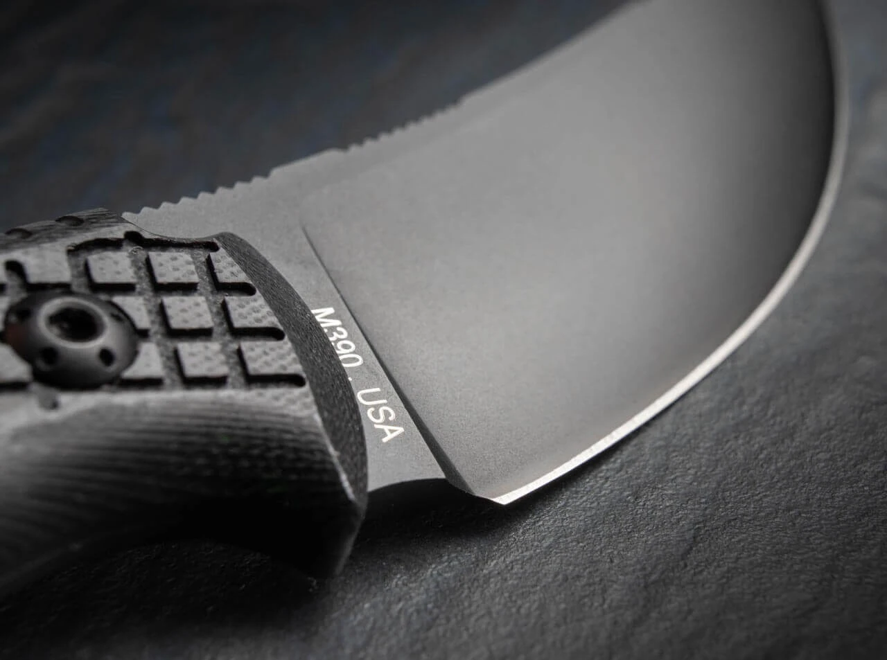 Das absolut praxistaugliche Bastinelli Chopper wurde speziell für die RAID Spezialeinheit der französischen Nationalpolizei entwickelt, die 1985 als Reaktion auf eine Serie von Bombenanschlägen gegründet wurde und seitdem zur Bekämpfung von Terrorismus in ganz Frankreich eingesetzt wird. Das in Vollerl-Bauweise aus pulvermetallurgischem M390 gefertigte Einsatzmesser ist überaus stabil und dank der zusätzlichen PVD-Beschichtung extrem widerstandsfähig. Der rutschfeste Griff besteht aus texturiertem G10 und liegt besonders sicher in der Hand, während Riffelungen im Bereich der Daumenauflage die Arbeitssicherheit zusätzlich erhöhen. Mit Fangriemenöse und passgenauer Kydex-Scheide.