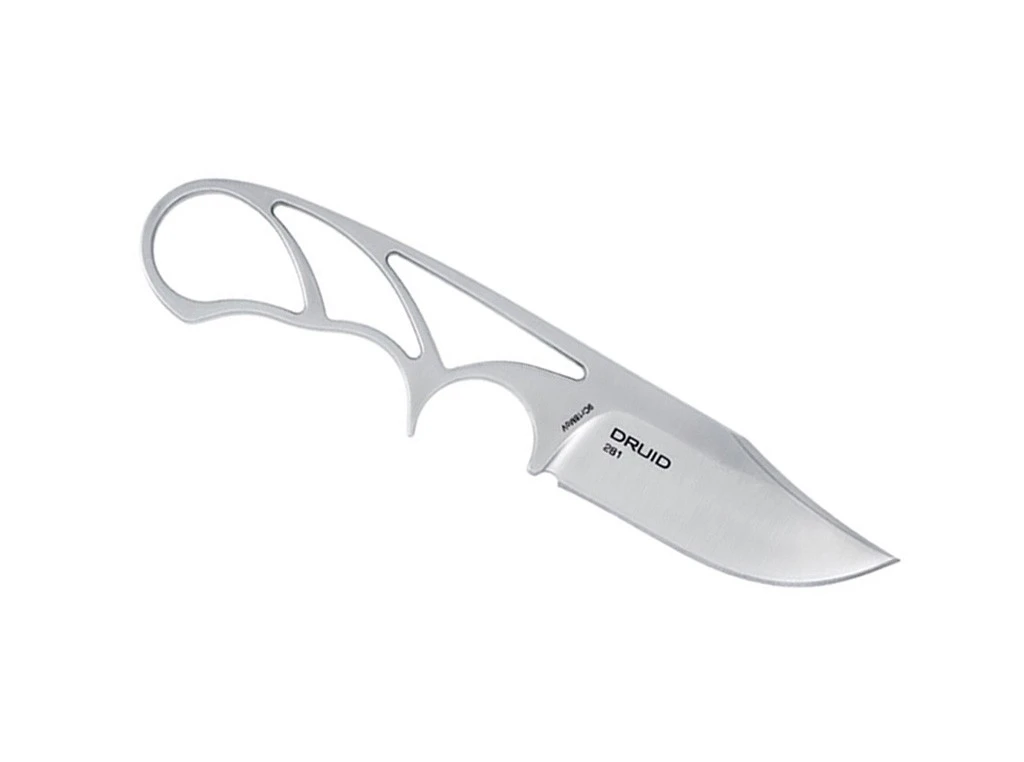 Die Besonderheit dieser Neck-Knife besteht in der ausgefeilten Ergonomie durch die Fingermulden. Dieses Design verleiht dem Druid einen verlässlichen und sicheren Griff sowie ausgezeichnete Handhabung unter den unterschiedlichsten Bedingungen. Wenn man maximale Kompaktheit erreichen will, geht dies meistens zu Lasten der Gebrauchsfähigkeit eines Messers. Das ist beim Druid Neck-Knife definitiv nicht der Fall. Verlässlichkeit ist bei der Verwendung eines Schneidwerkzeugs die oberste Tugend. Die Druid Neck-Knives bieten drei Messergrößen mit unterschiedlichen Klingenformen an, was jedem die Wahl des für ihn passenden Modells ermöglicht. Jedes Messer wird mit einer bequem zu tragenden Kydex-Scheide geliefert. Durch das geringe Gewicht dieser Kombination ist diese für ihren Träger beinahe nicht zu spüren. Die Modelle Druid 281, 282 und 283 sind eine perfekte Ergänzung zu den größeren Druid Modellen und sind ein nahezu unverzichtbarer Begleiter, wenn die Situation nur geringstes Gewicht in Neck-Trageweise erlaubt.