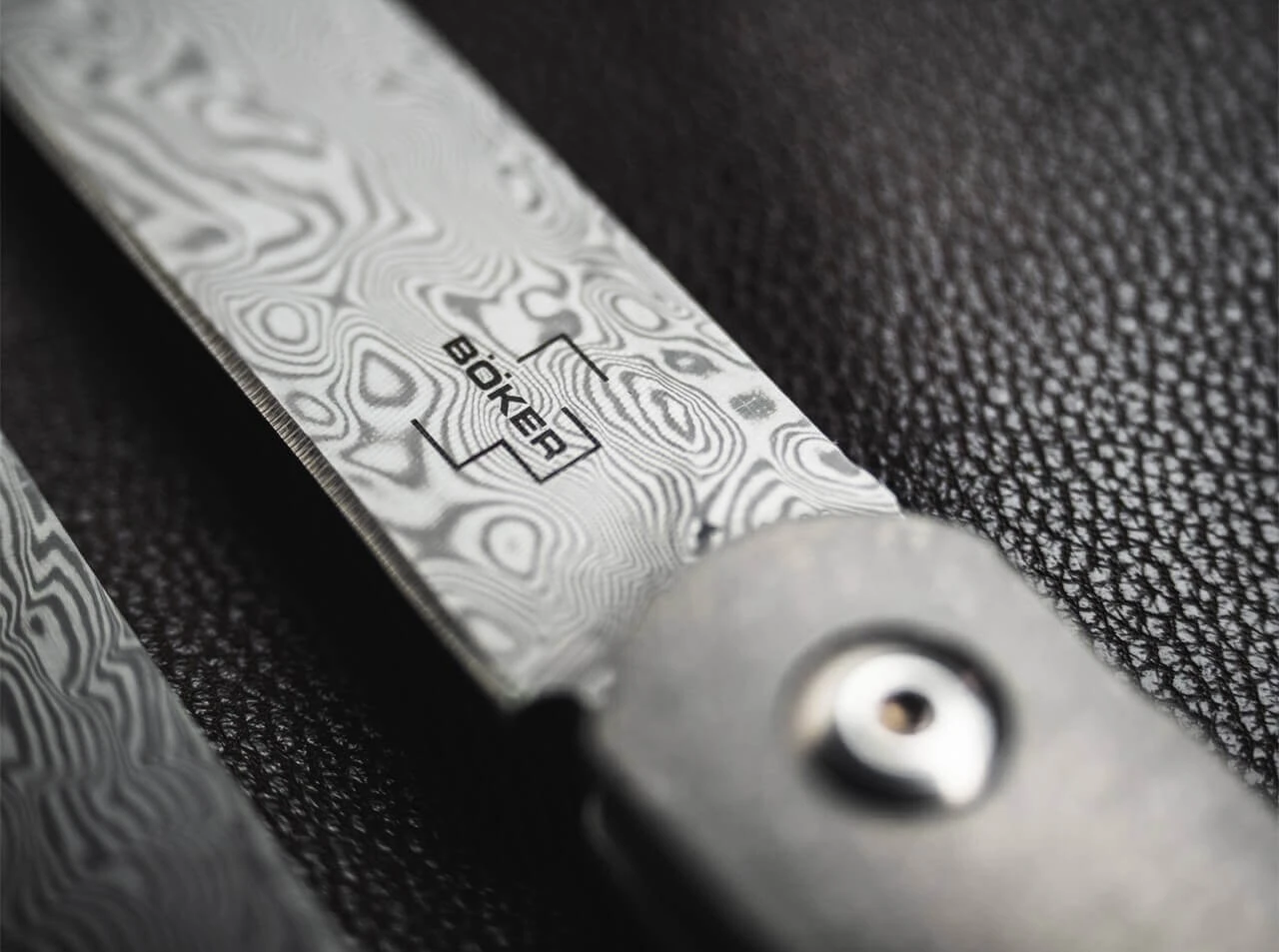 Das Böker Plus LRF Damast von Kansei Matsuno entspricht in seiner schlanken und geradlinigen Ästhetik wie kaum ein anderer Entwurf dem Ideal des japanisch inspirierten Gentlemanmessers. Die elegante Klinge aus rostfreiem Damast besteht aus 110 Lagen, wird per Frontflipper geöffnet und bietet durch die Kugellagerung einen seidenweichen Gang. Die Griffschalen aus hochfestem Titan sitzen auf Titanplatinen, die den Linerlock beherbergen. Eine große Fangriemenöse und der praktische Deep-Carry-Clip (Tip-up/r) aus Titan ermöglichen ein komfortables Tragen des Leichtgewichtes. Mit hochwertigem Nylon-Etui zur Aufbewahrung.