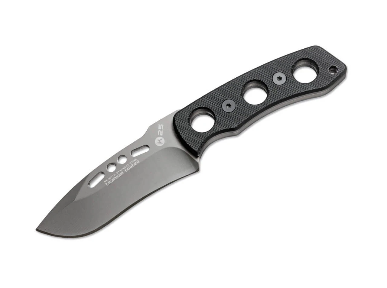 Das K25 Neck Knife ist ein kleines und handliches Messer, das trotz der kompakten Dimensionen eine Menge Potenzial und Nutzwert bietet. Die Fulltang-Konstruktion besteht aus einem Stück 7Cr17MoV und ist mit einer griffigen G10-Beschalung ausgestattet. Mit Fangriemenöse, Kydexscheide und Kugelkette.
