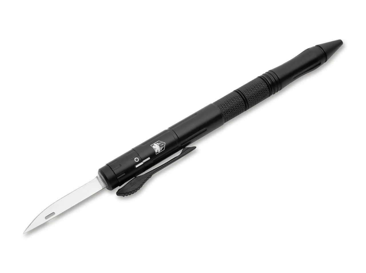 Das CobraTec OTF Pen Knife Black vereint hohe Praxistauglichkeit auf kleinstem Raum. Der hochwertige Kugelschreiber aus Aluminium beherbergt eine ca.5cm lange Klinge im Griffrücken. Somit können kleine Schneidarbeiten wie das Öffnen eines Paketes im Handumdrehen erledigt werden.