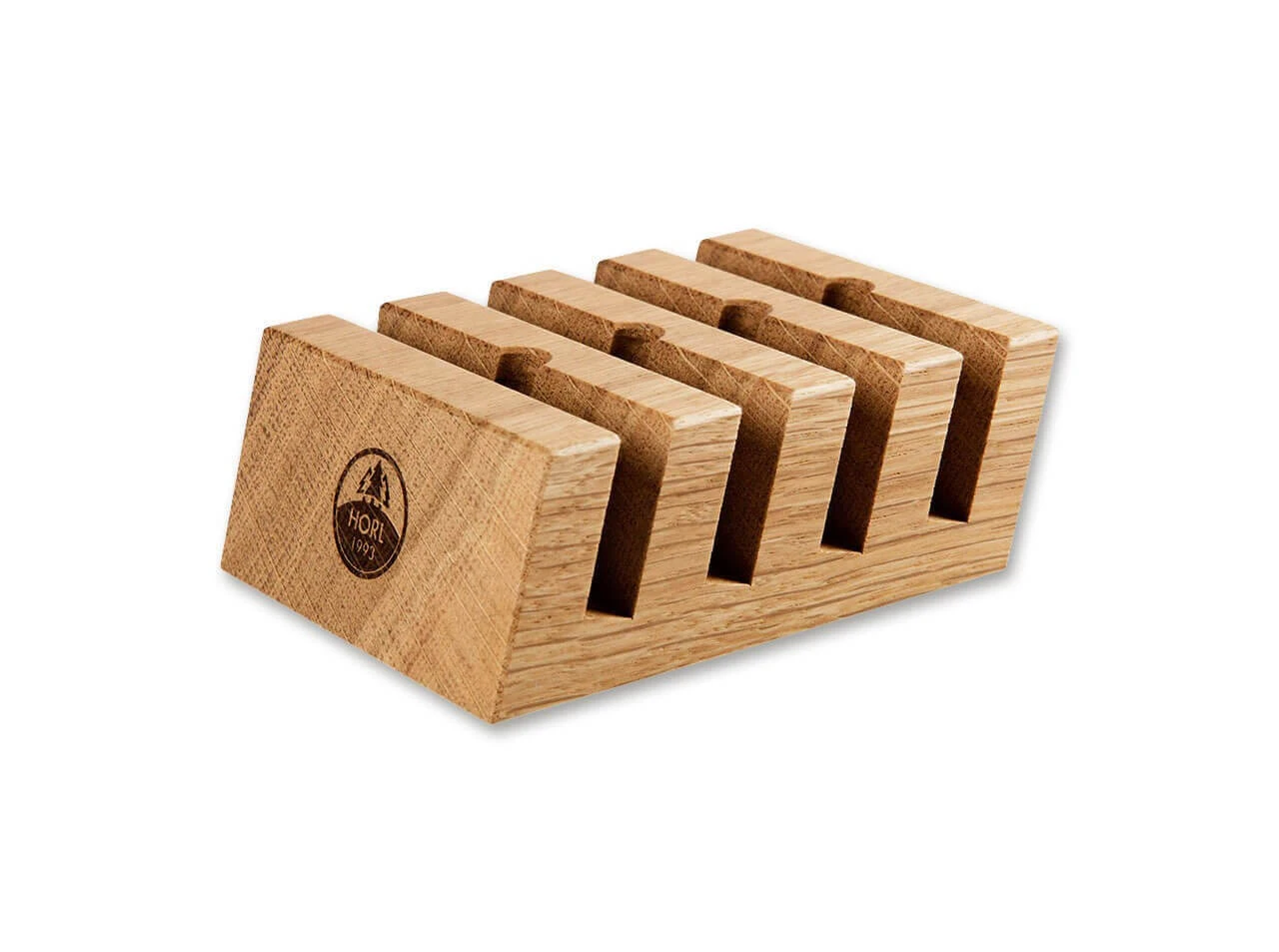 Die perfekte Aufbewahrung für bis zu vier HORL Schleifscheiben. Gefertigt in Deutschland aus massiven Eichenholz.