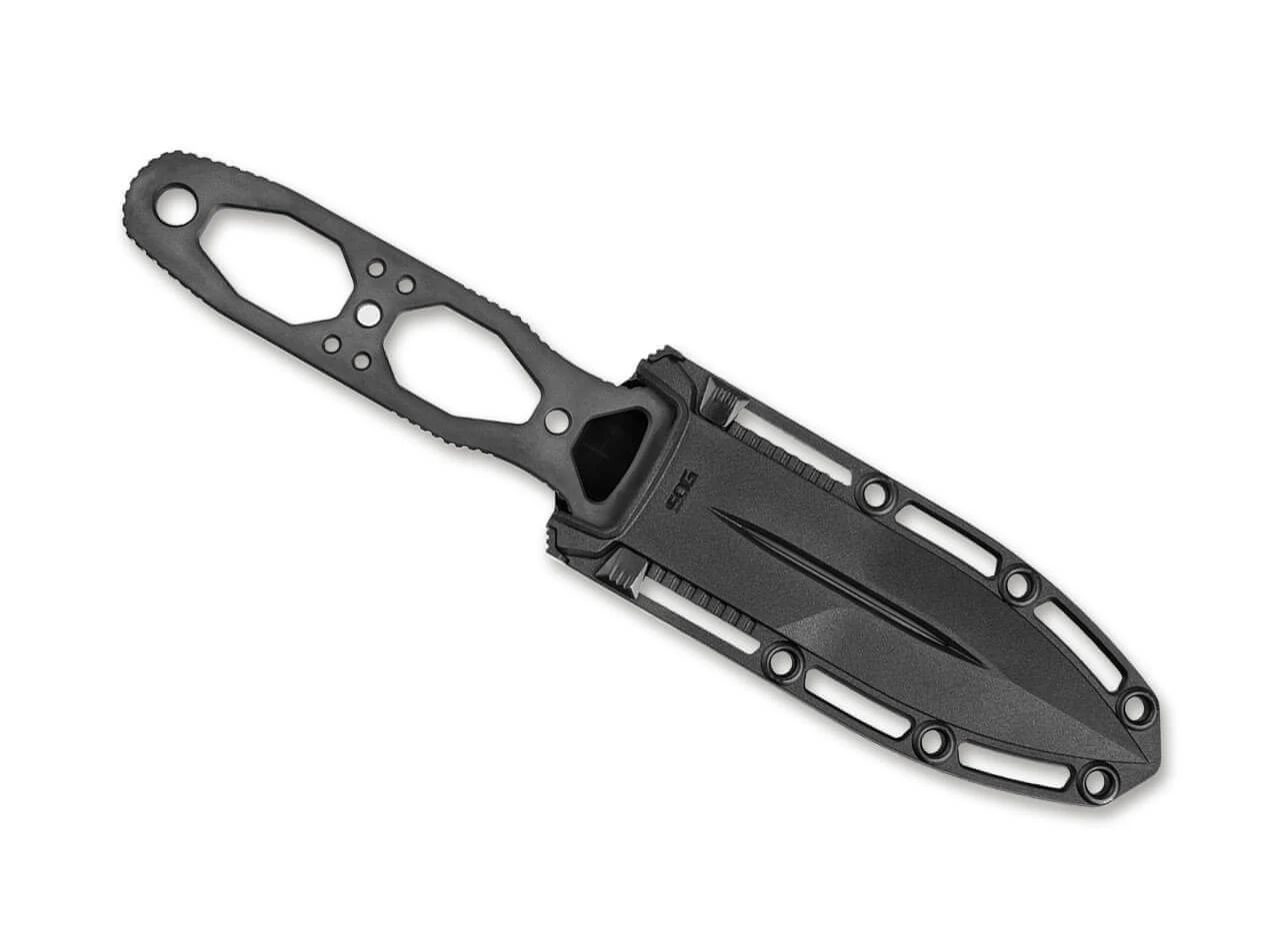 Das Pentagon FX Blackout von SOG operiert als taktisches Messer in Vollerl-Bauweise meist unter dem Radar. Mit seiner schwarz beschichteten und beidseitig abgezogenen Klinge aus robustem CPM-S-35VN sowie den demontierbaren Griffschalen aus schwarzem G10 meistert das feststehende Messer verdeckte Missionen des Alltags zuverlässig und ohne großes Aufsehen. Mit passgenauer GRN Scheide und Fangriemenöse wartet das SOG Pentagon FX bereits auf seinen nächsten Einsatz.